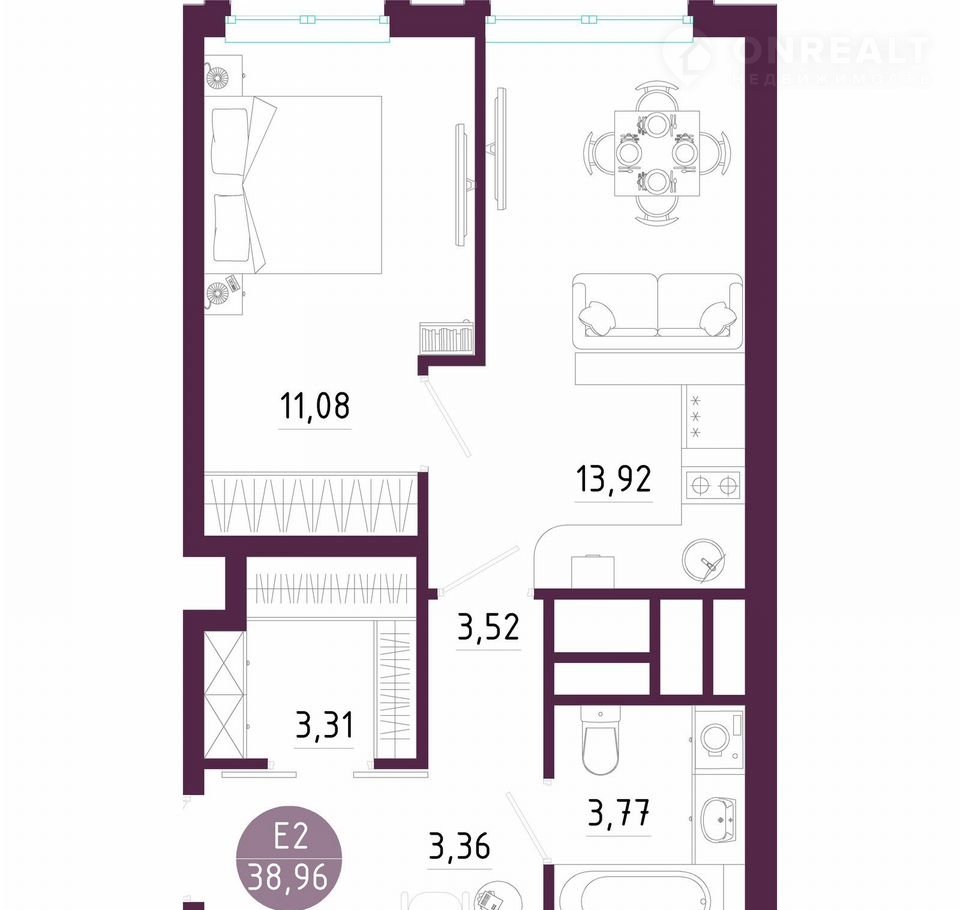 Общая площадь 39 м2
