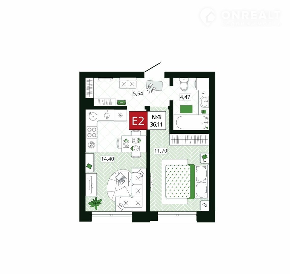 Общая площадь 36.1 м2