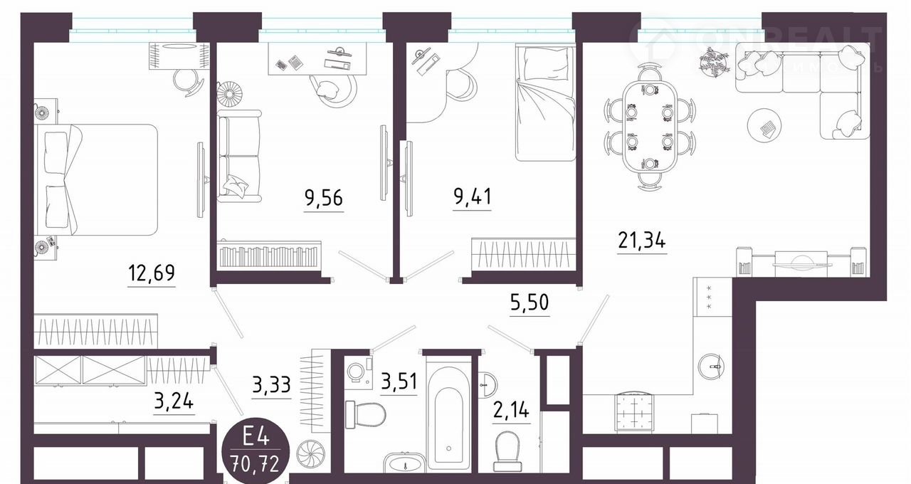 Общая площадь 70.7 м2