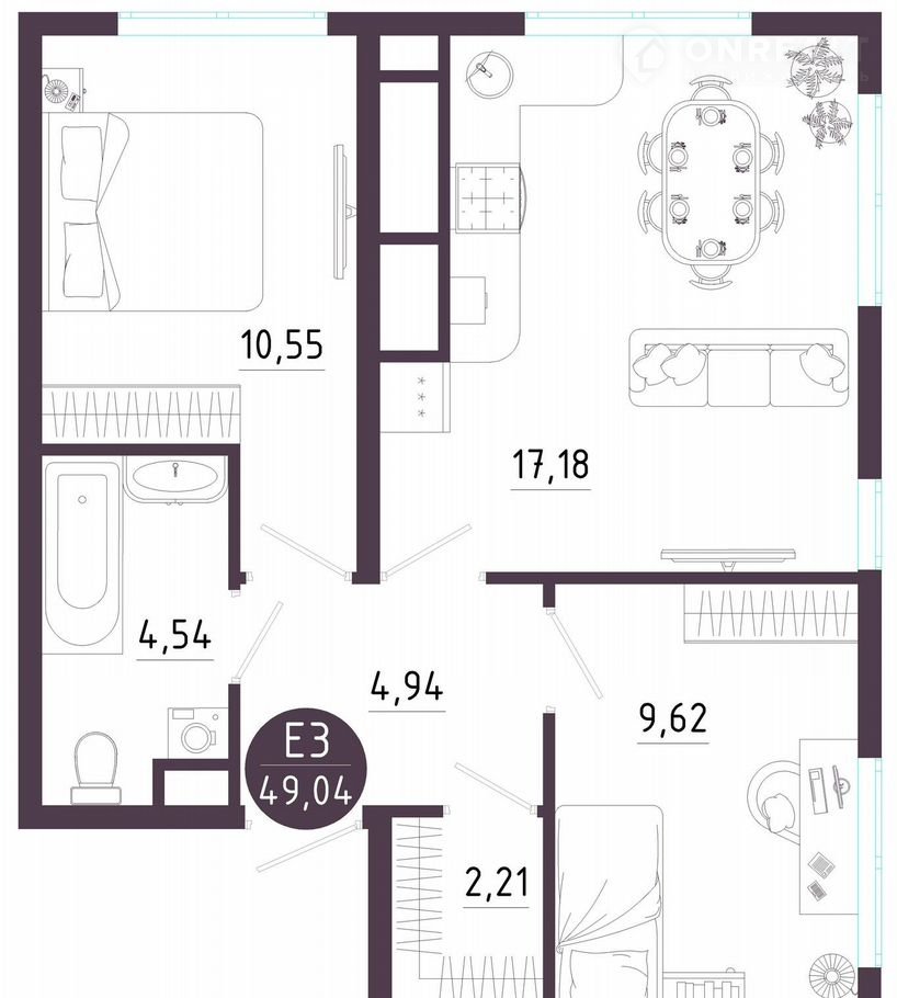 Общая площадь 49 м2