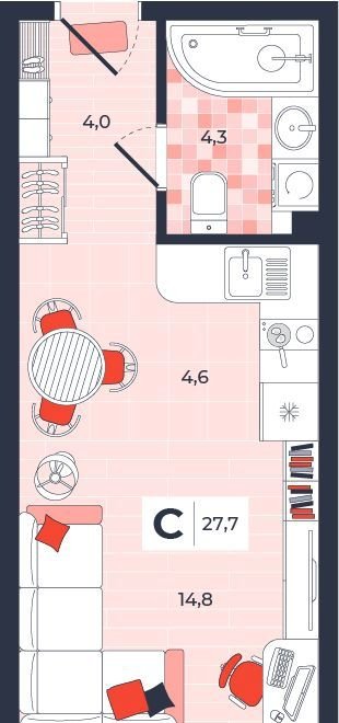 Общая площадь 27.7 м2