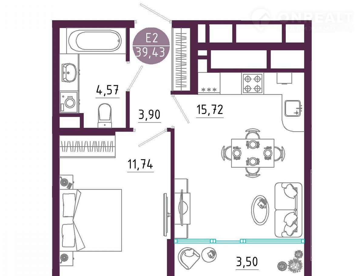 Общая площадь 39.4 м2