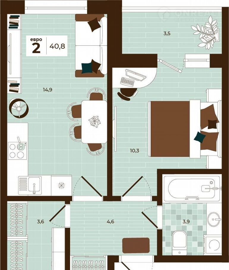 Общая площадь 40.8 м2