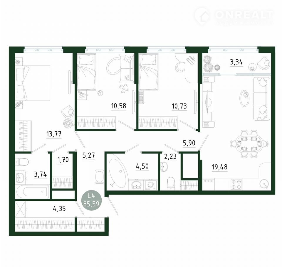 Общая площадь 85.6 м2