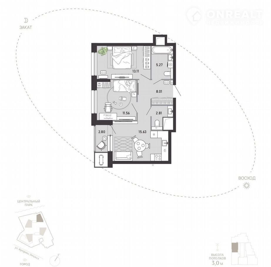 Общая площадь 59.2 м2