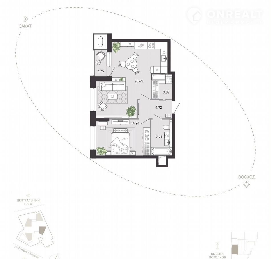 Общая площадь 59 м2