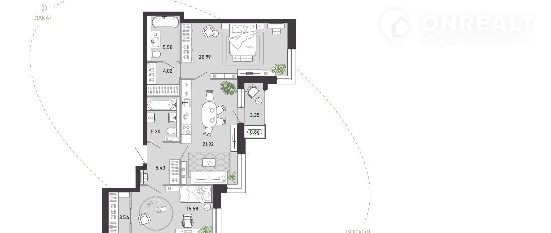 Общая площадь 86.5 м2