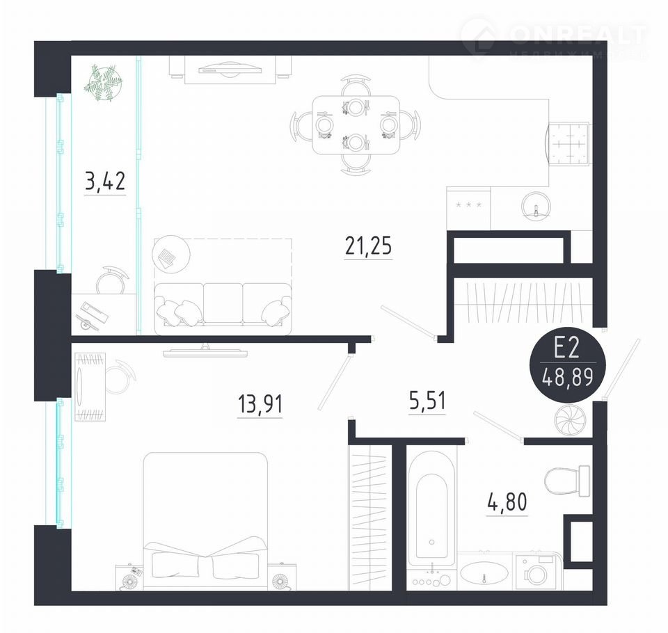 Общая площадь 48.9 м2