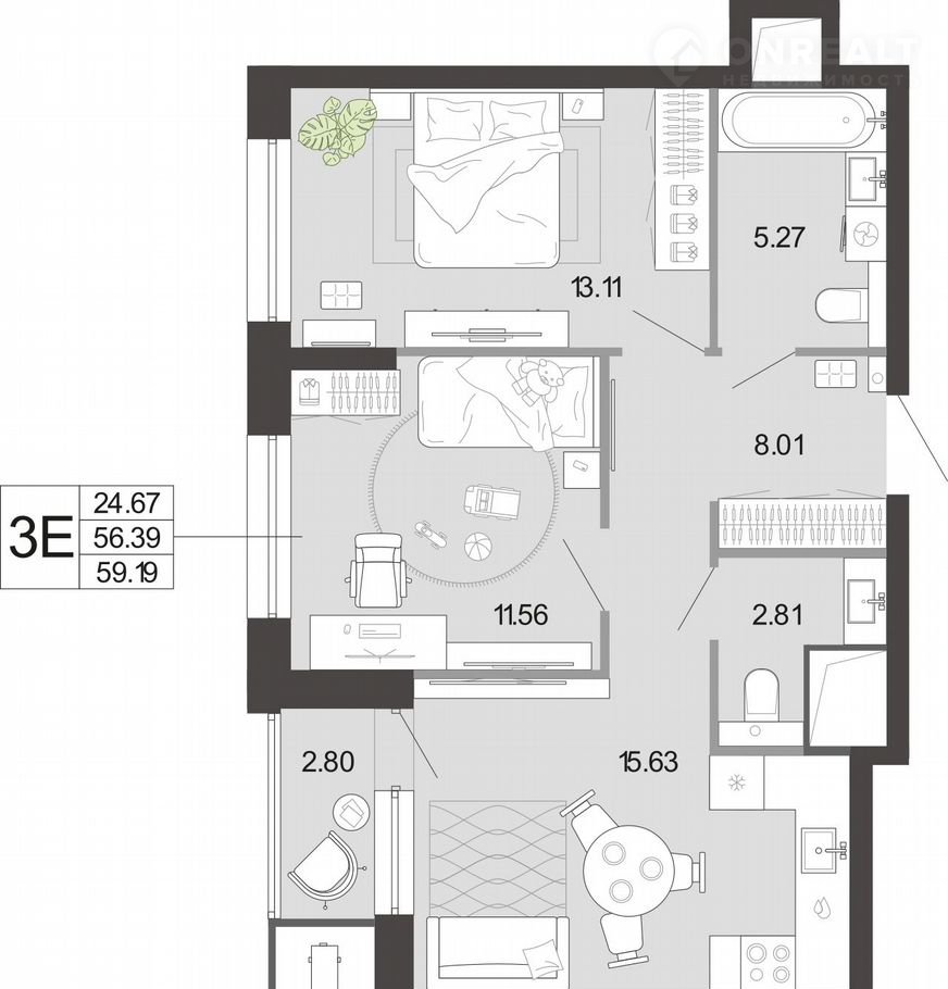 Общая площадь 59.2 м2