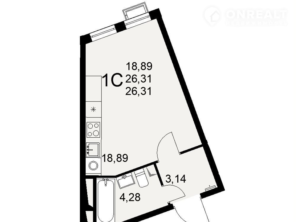 Общая площадь 26.3 м2