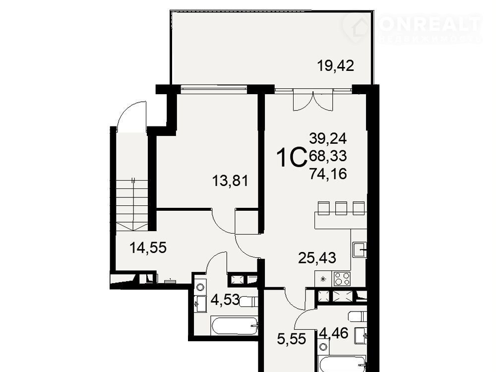 Общая площадь 74.2 м2