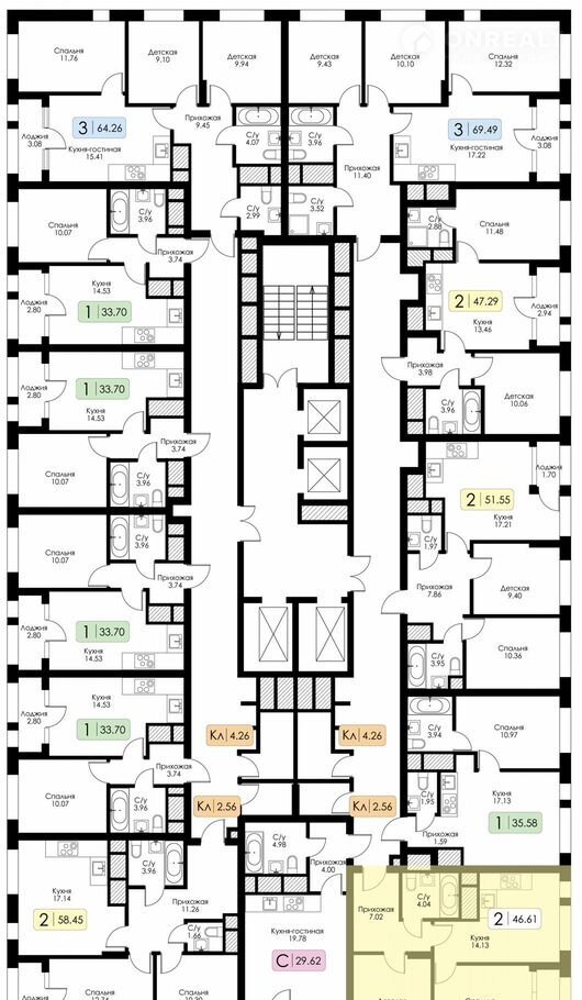 Плoщадь 46.61 нa 2 этаже.