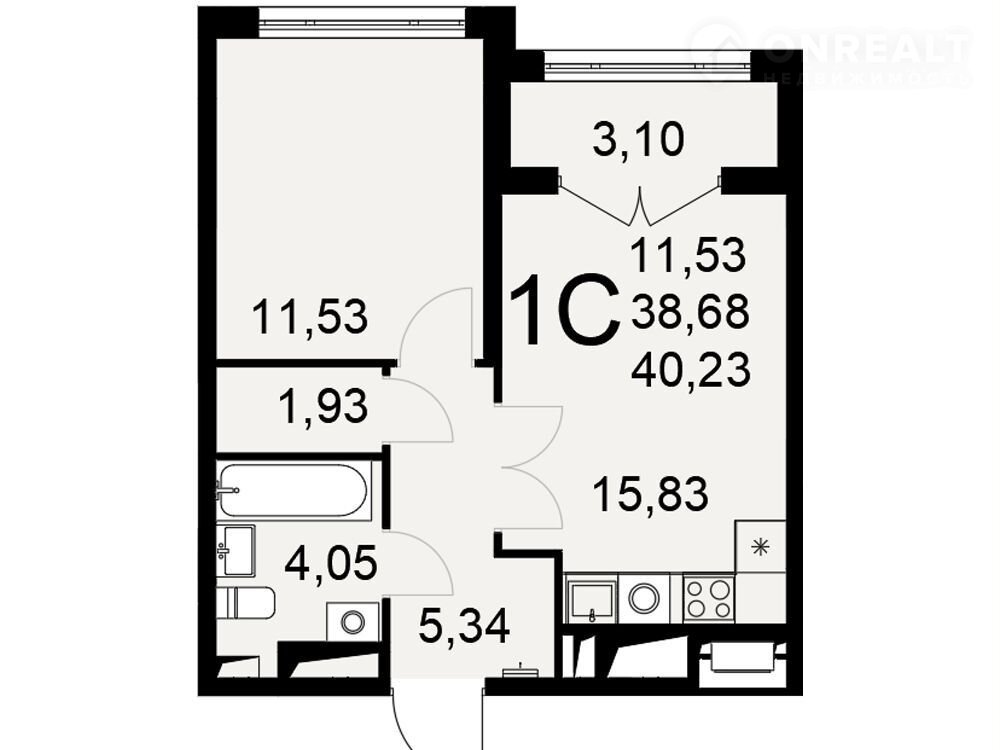Общая площадь 40.2 м2