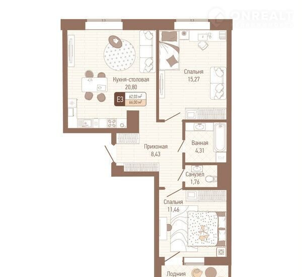 Балкон, лоджия 1 лоджия