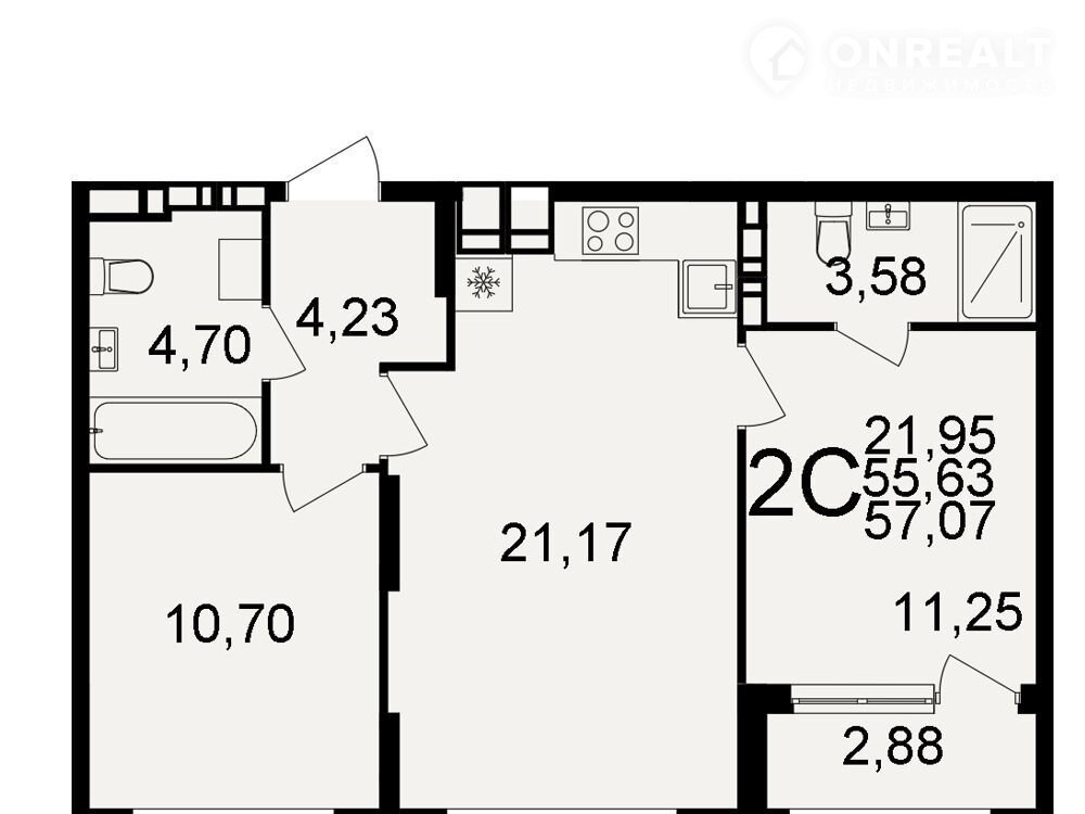 Общая площадь 57.1 м2