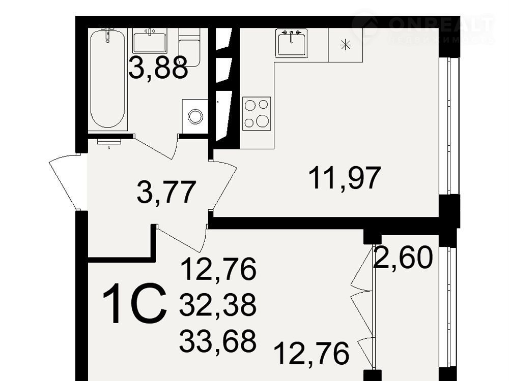Общая площадь 33.7 м2