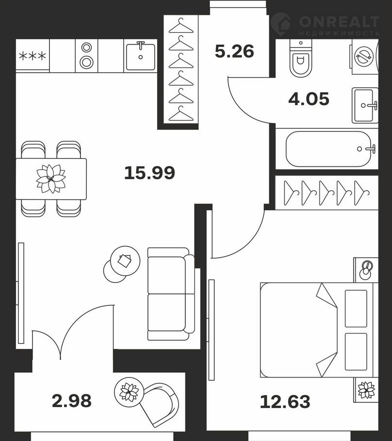 Балкон, лоджия 1 лоджия