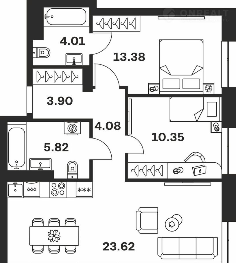 Общая площадь 65.2 м2