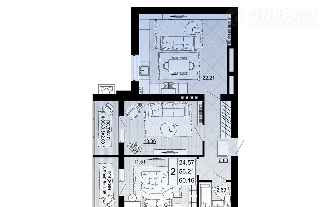 Общая площадь 60.2 м2
