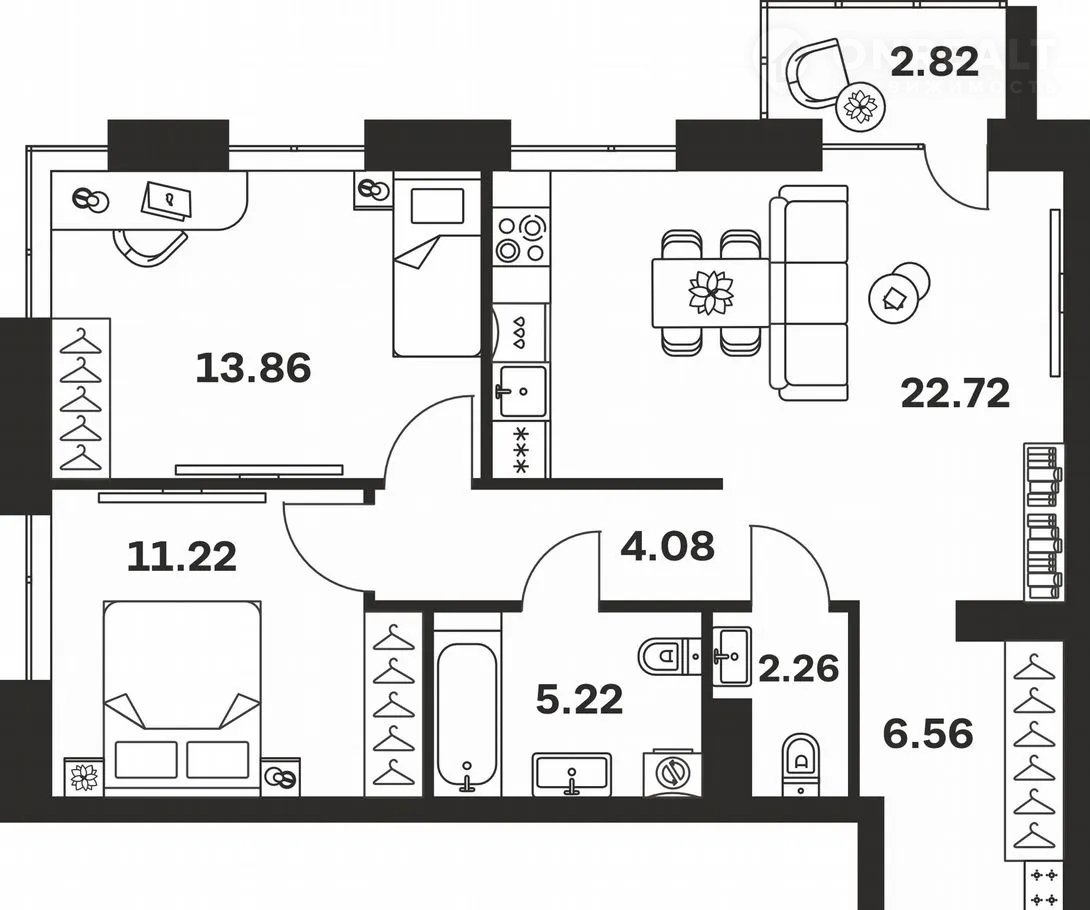 Общая площадь 68.7 м2