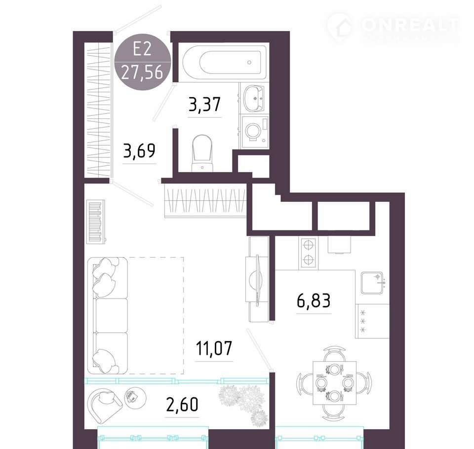 Общая площадь 27.6 м2
