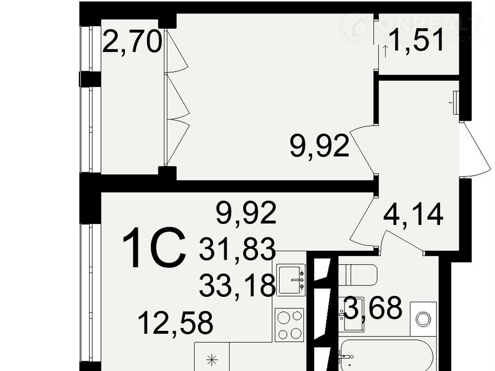 Общая площадь 33.2 м2