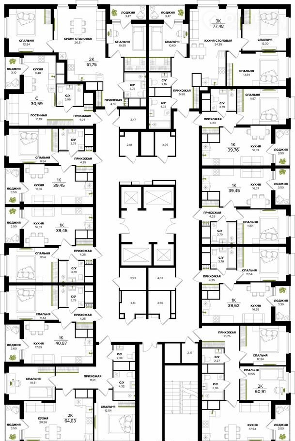 Общая площадь 61.3 м2