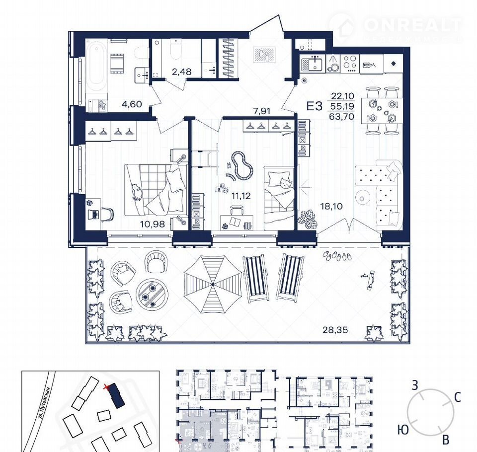 Идеальное месторасположение жилого комплекса позволяет наслаждаться всеми преимуществами современной инфраструктуры в шаговой доступности.