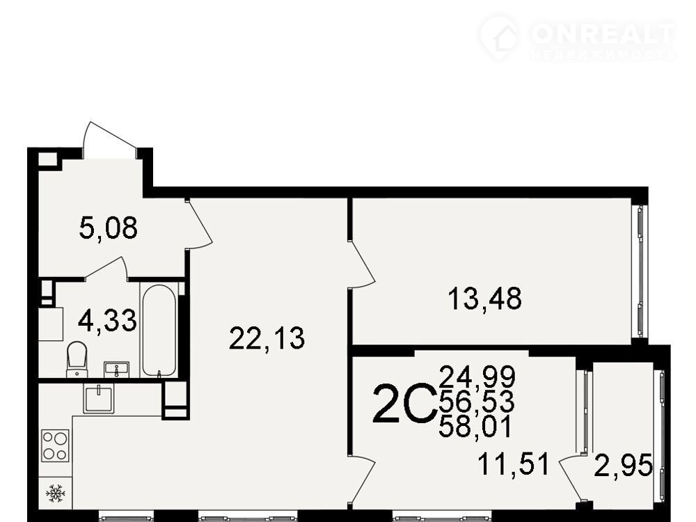Общая площадь 58 м2