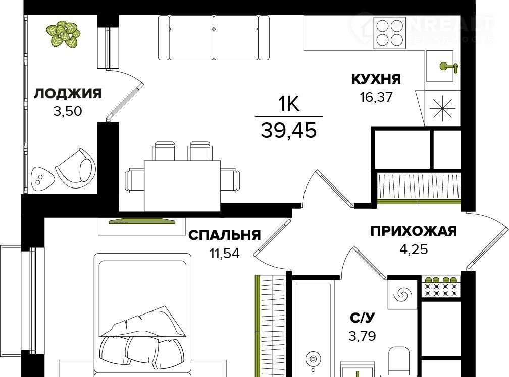 Общая площадь 36 м2