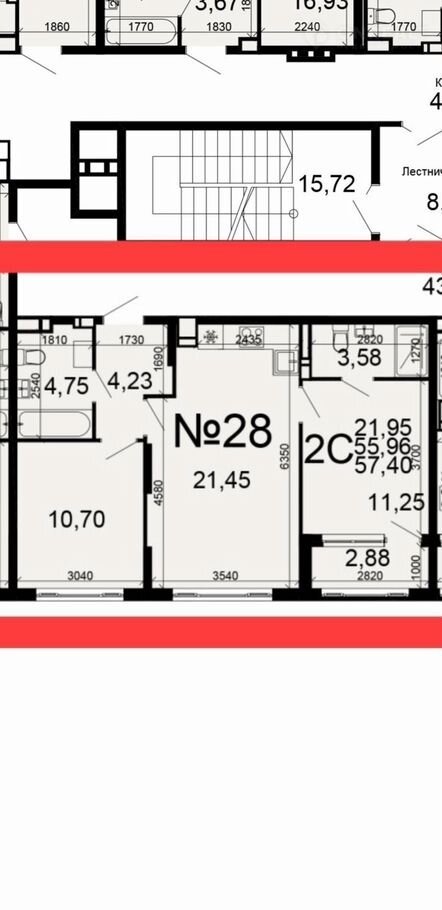 Общая площадь 57.4 м2
