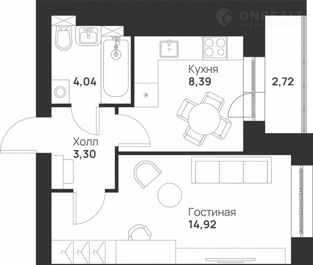 Общая площадь 33.4 м2