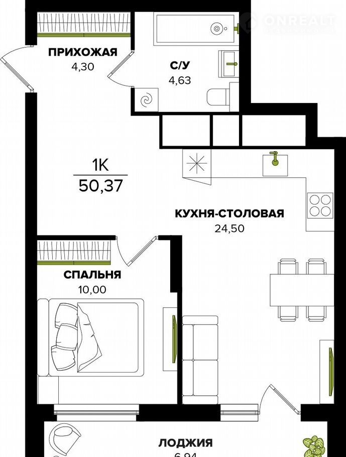 Количество комнат 1