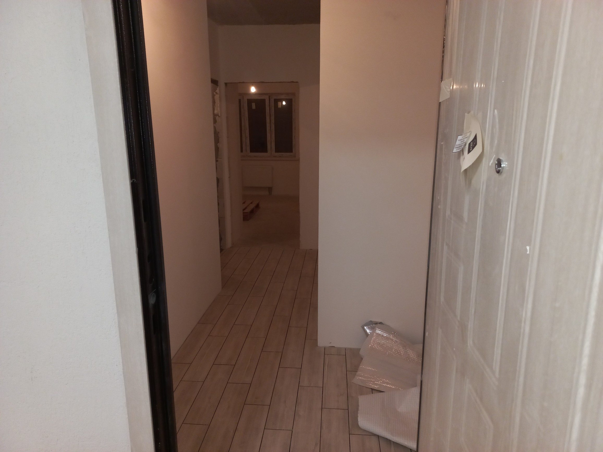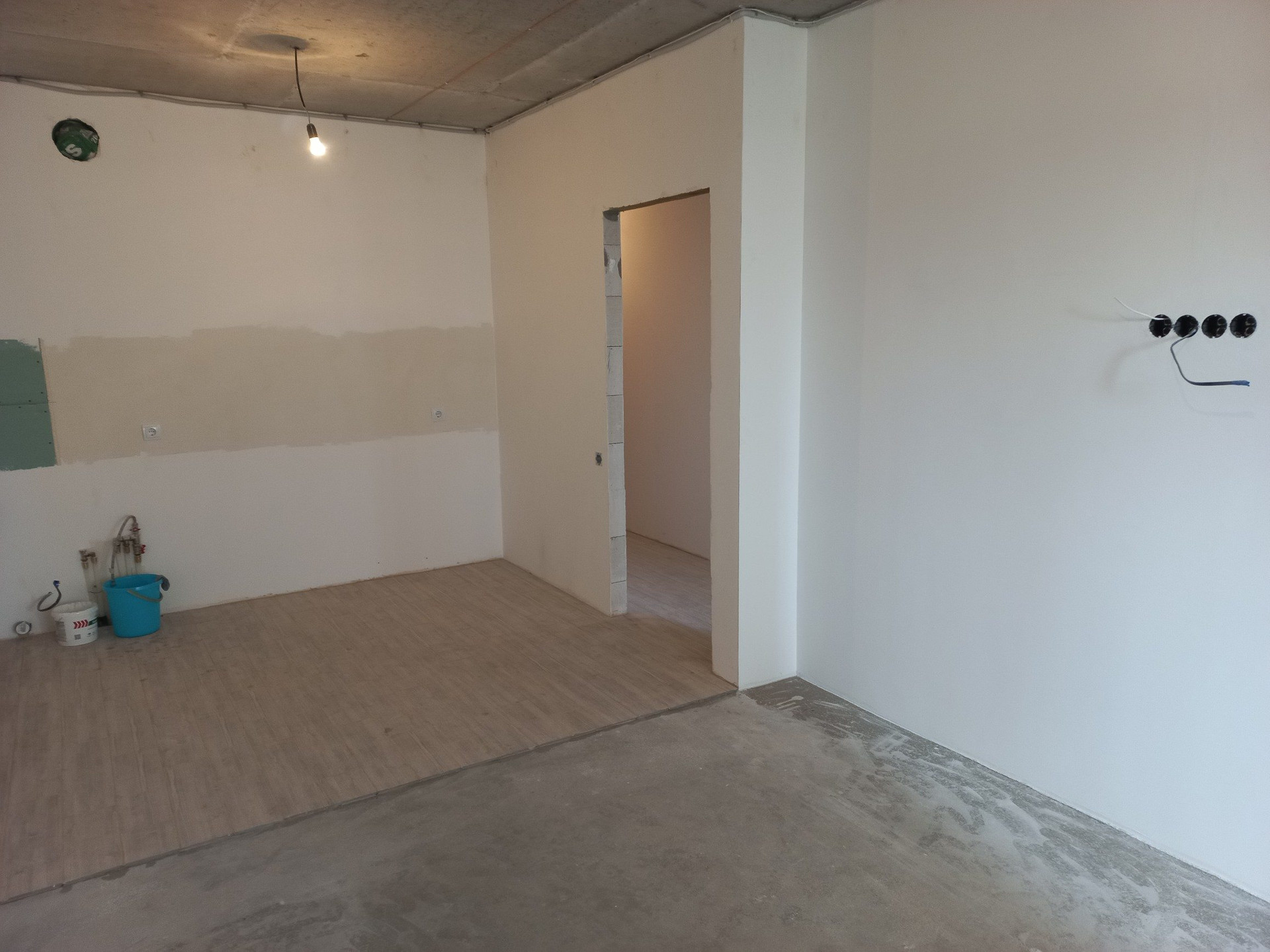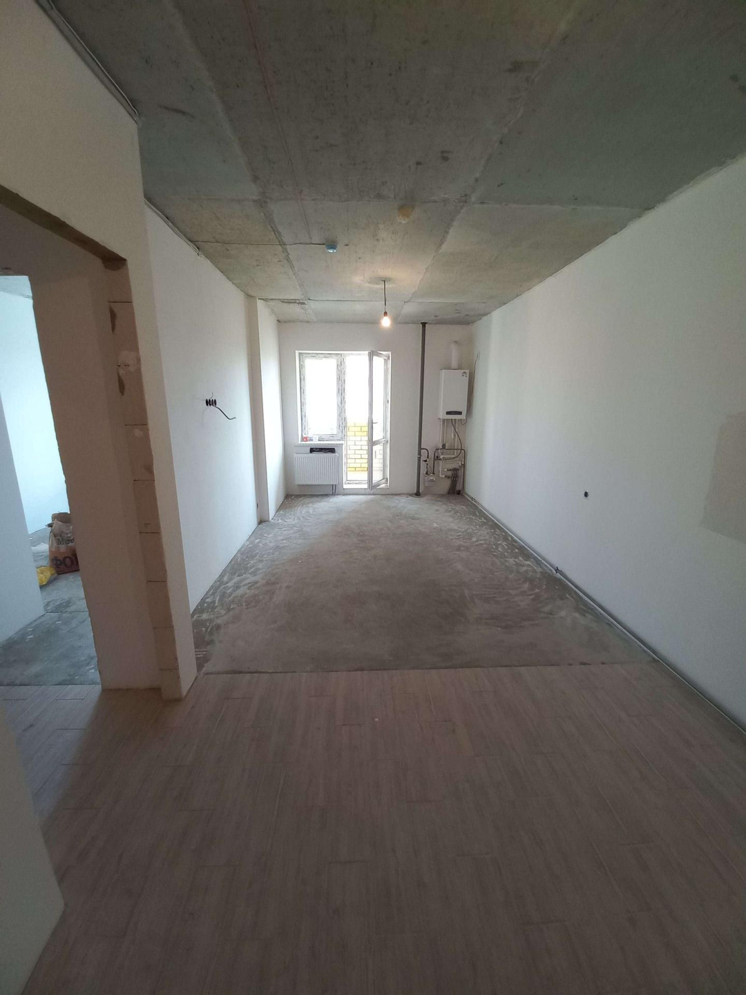 Продаю евродвушку в ЖК "Смарт квартал на Сурикова" в сданном доме. Квартира абсолютно новая. Выход на балкон из гостинной. В данный момент ведутся работы по чистовой отделке. В квартире отшпаклеваны все стены (готовы к поклейке обоев), оштукатурены откосы, закрыт вентиляционный короб, разведена электрика, а именно добавлены розетки в зале под TV, выключатели, выведен силовой кабель под электроплиту (газовую трубу не убирали, но её удаление согласовано с горгазом), в коридоре на полу и в кухонной зоне уложена плитка Kerama Marazzi (смотрите фото), в ванной оштукатурены все стены, на полу залита стяжка и уложен подогрев пола, также все стены и пол в ванной выложены плиткой Kerama Marazzi согласно дизайн-проекту, разведена вода под ванну, умывальник, полотенцесушитель и стиральную машину, а также электрика под подогрев пола и под зеркало с подсветкой. На балконе пол утеплён 150 мм пенополистиролом технониколь и залита стяжка. Квартира с индивидуальным отоплением. Ремонт в процессе, работы выполняют специалисты. Готов рассмотреть вариант продажи в таком виде т.е. на данной стадии, либо выполнить все работы до конца согласно дизайн-проекту или с внесением в него корректировок по желаню заказчика. Продает собственник. Торг на месте в зависимости от стадии готовности и условий сделки. Подходит под ипотеку.