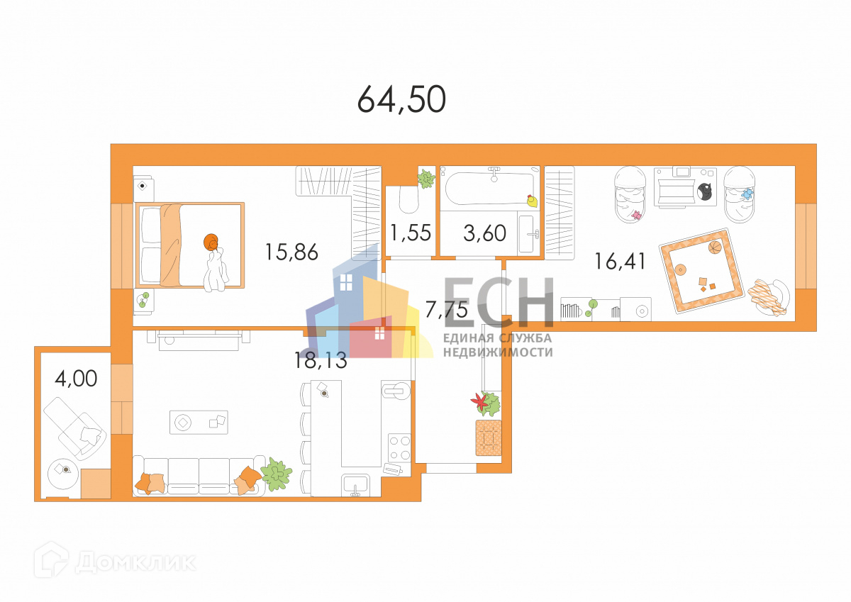 Жилая площадь 40 м2