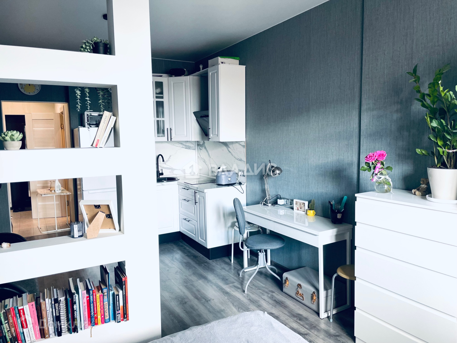 Выполнен качественный, профессиональный ремонт. В квартире качественная современная кухня, встроенная бытовая техника. Отличное зонирование на спальню и кухню гостиную. Прекрасная входная зона. Всё остаётся в подарок новому собственнику! Прекрасный вид с лоджии.
