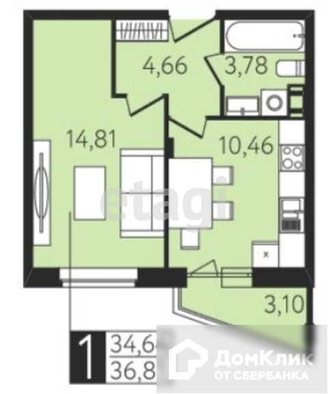 Общая площадь 36.81 м2