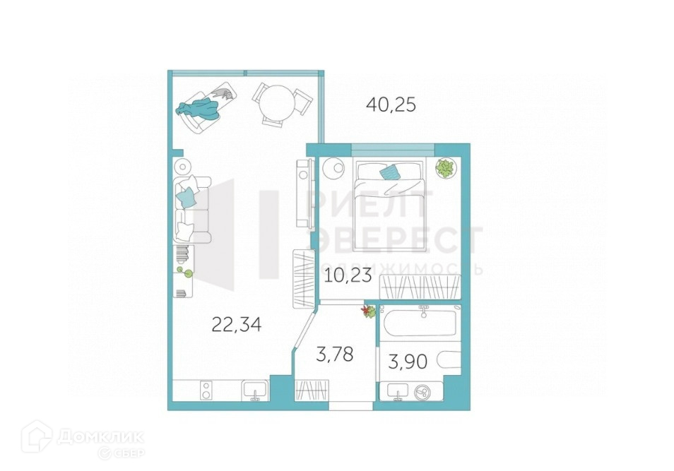 Общая площадь 40.25 м2