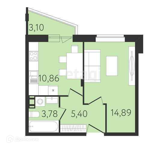 Общая площадь 37.7 м2