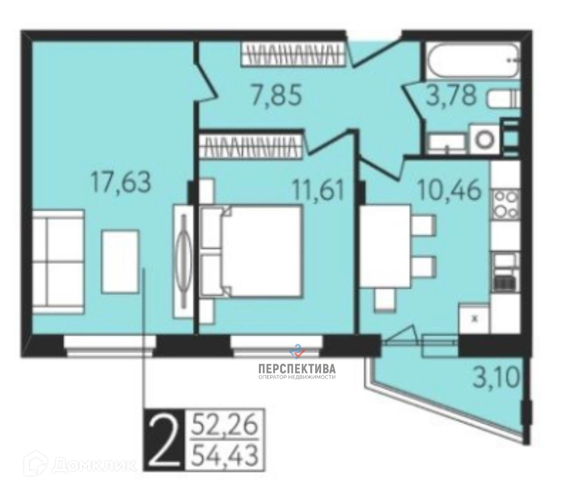 Общая площадь 54 м2