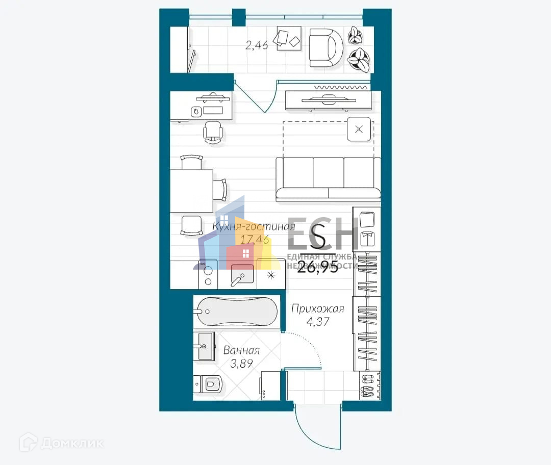 Общая площадь 26.95 м2