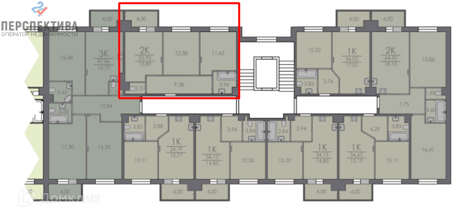 Общая площадь 53.8 м2