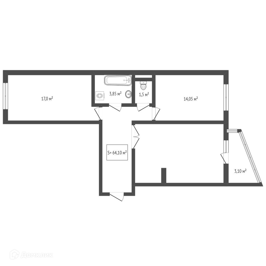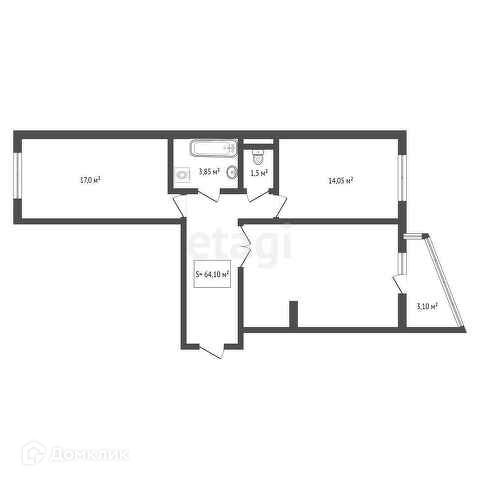Общая площадь 64 м2