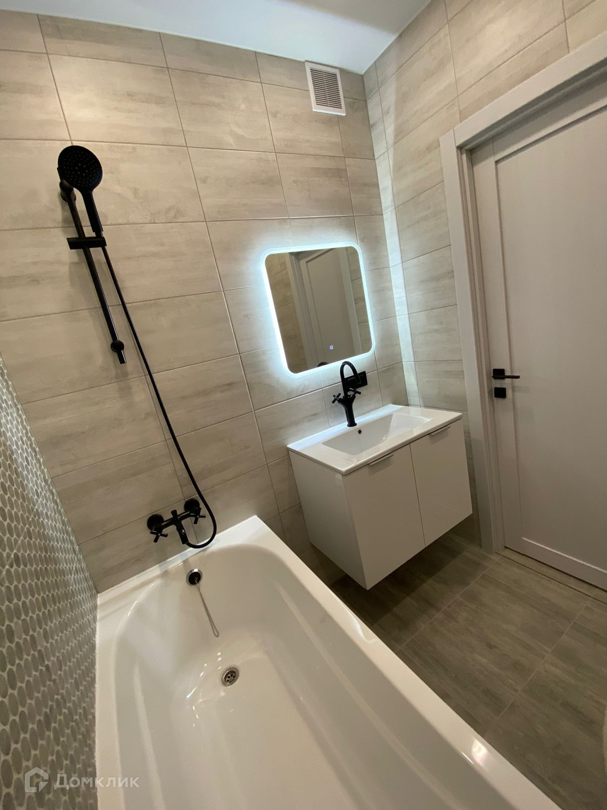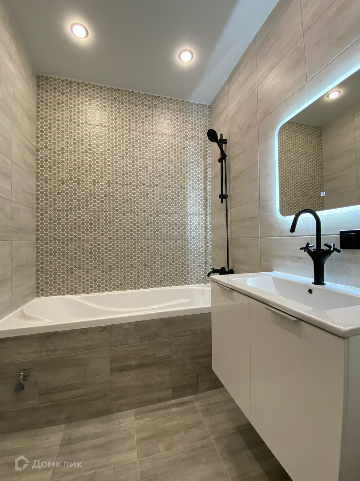 - тумба и зеркало с подсветкой в ванной комнате