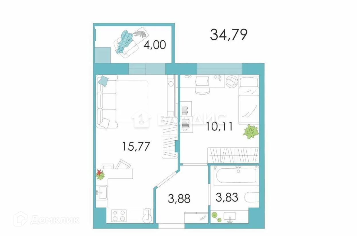 Общая площадь 35 м2