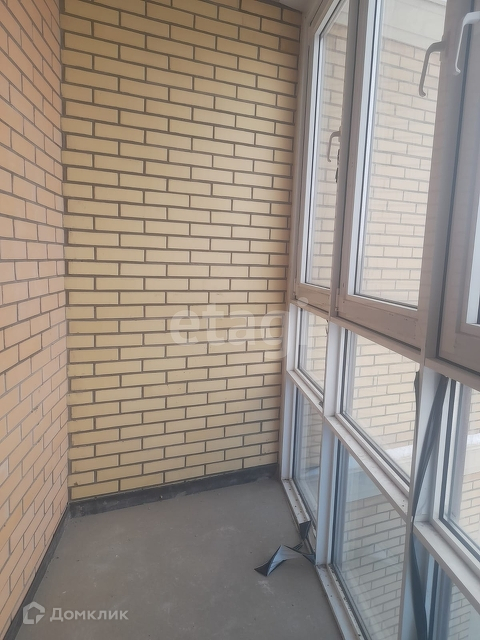 Большая лоджии 3,6 кв.м. с панорамным остеклением, выходит из кухни.