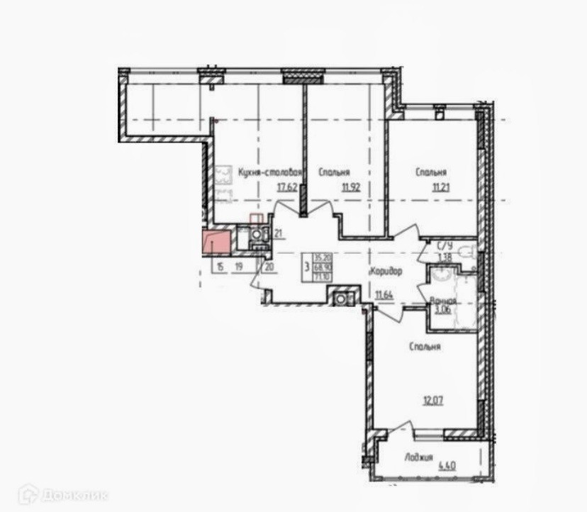 Самая удачная планировка ЕВРО4: кухня с кабинетом, 3 изолированных спальни, раздельный санузел, просторный коридор c нишей под гардероб.