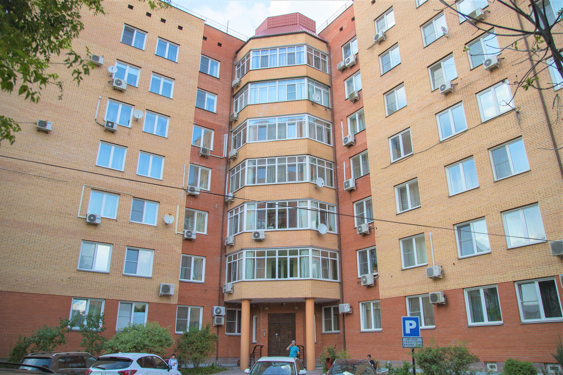 Закрытая придомовая территория с круглосуточной охраной и видеонаблюдением, подземный паркинг.
