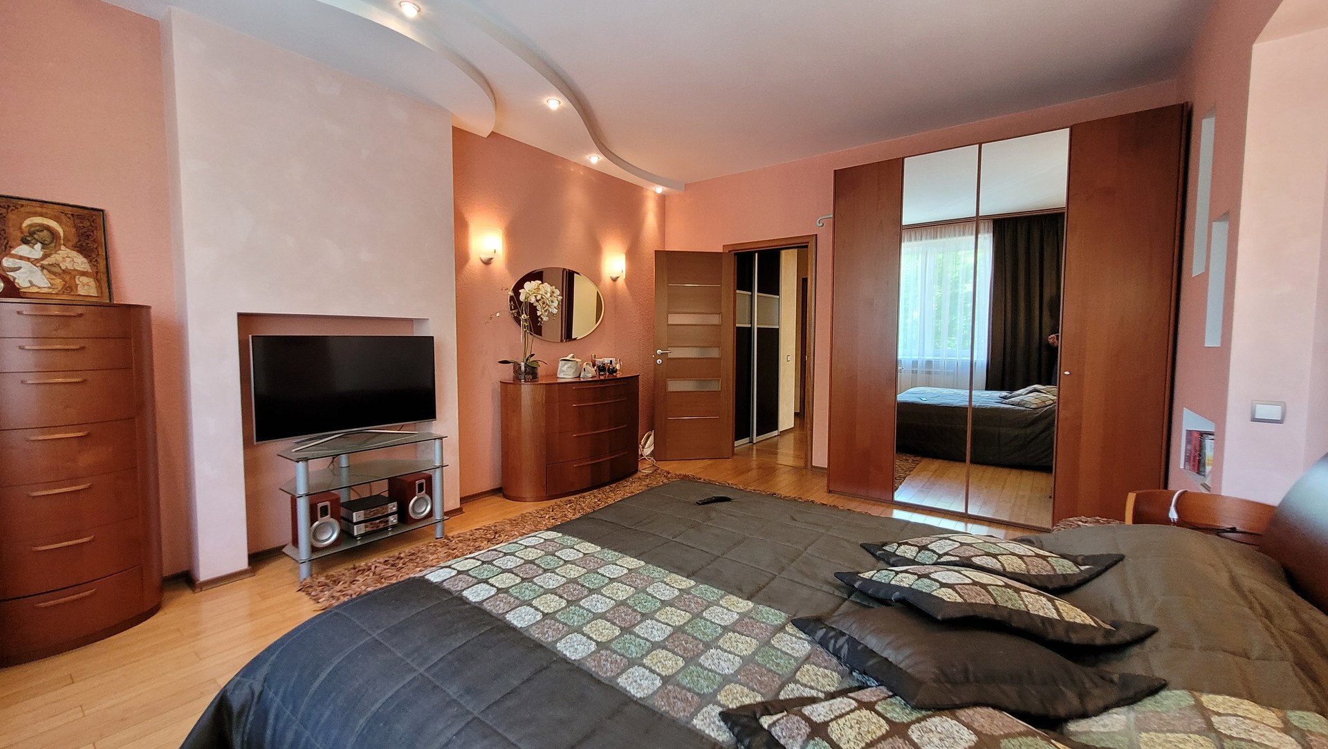 Пространство квартиры представляет собой функциональную планировку, состоящую из просторной кухни-столовой, гостиной, 3 спален, гардеробной и 2 санузлов.