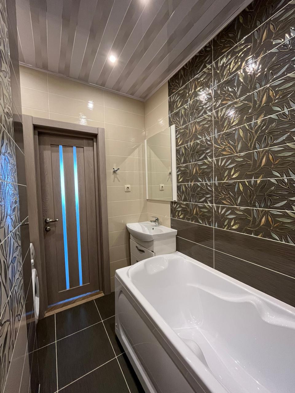 В ванне установлена ванна AQUAVEL ,сантехника и мебель Акватон, стиральная машина.